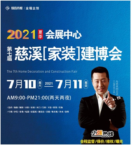 2021第七届慈溪家装建博会将在慈溪会展中心盛大举行,活动时间在2021年7月10日至7月11日。
